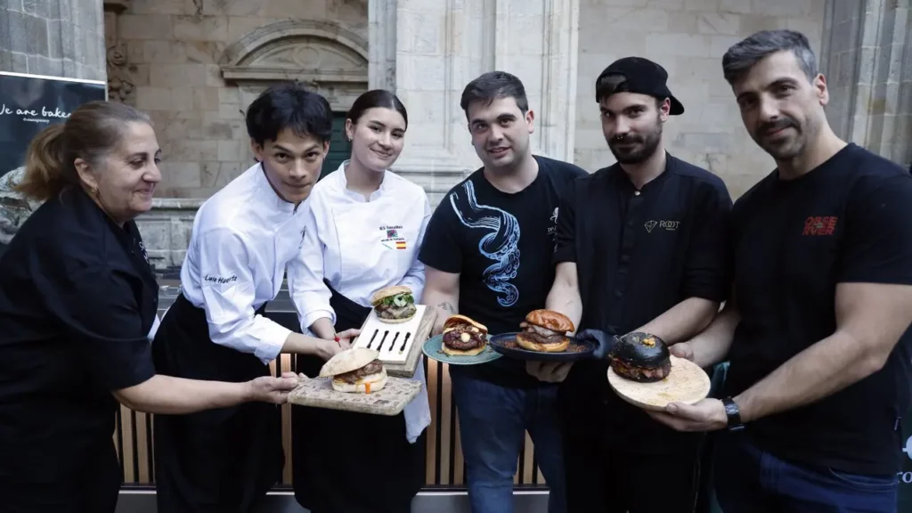 En la final se coló la propuesta de dos alumnos de 2º del ciclo de Cocina del IES Sanxillao, Victoria Noguera y Luis Huertas. Su hamburguesa es una bomba calórica no apta para comensales con el colesterol alto pues es con carne de ternera cachena; torrezno y crujiente de panceta de porco celta; queso de San Simón; mayonesa y mermelada de pimiento de Herbón y canónigos aliñados con reducción de vino mencía de la Ribeira Sacra, en pan de cerveza.